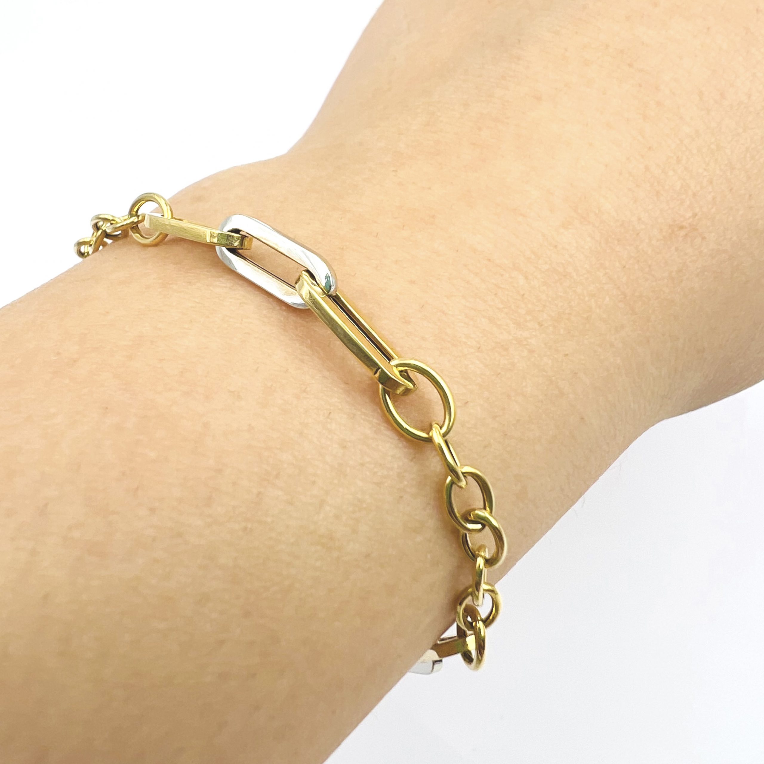 Bracciale bicolore in oro 18kt con maglie alternate