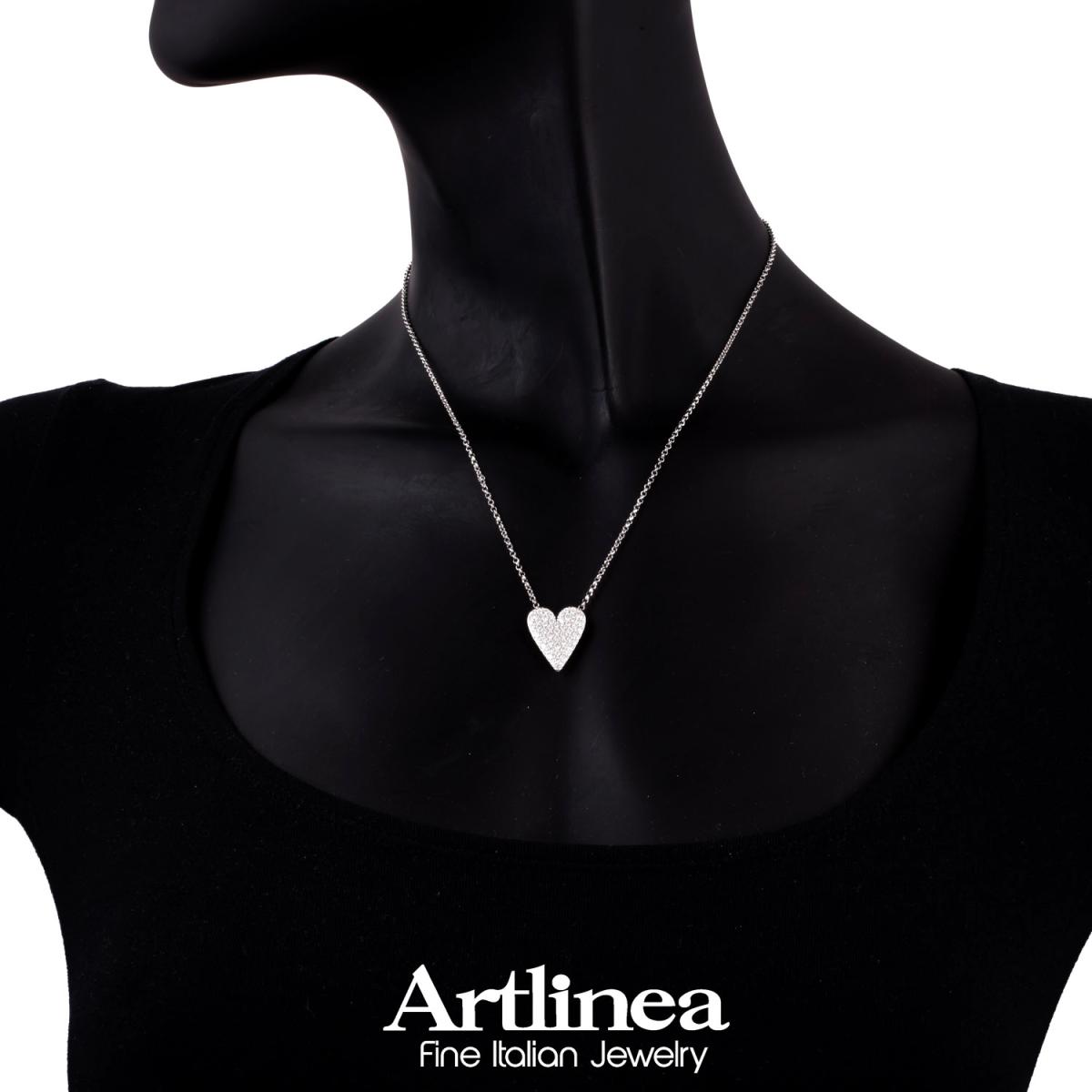 Collana con pendente a cuore in argento 925 rodiata con zirconi bianchi – ZCL1416-LB