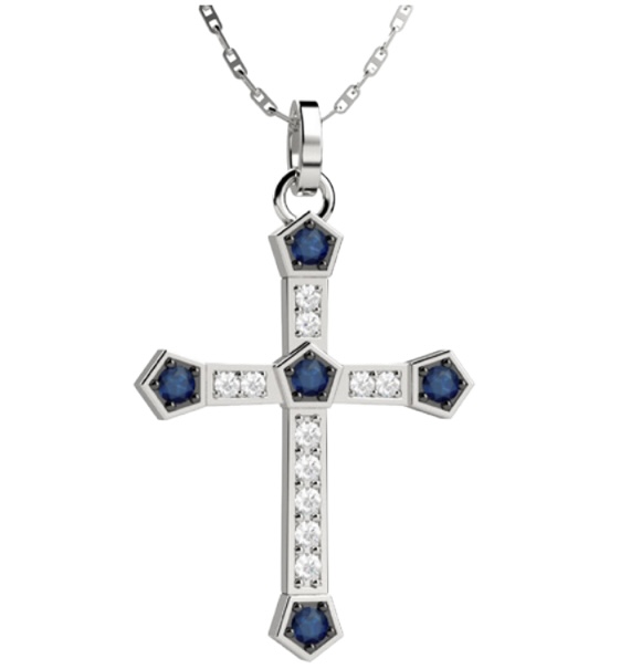 Realizzato in oro bianco 18kt diamanti bianchi e zaffiri blu